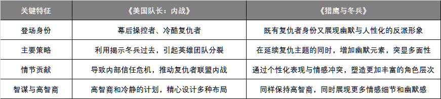 泽莫男爵的角色塑造无疑取得了较大成功,他在《美国队长:内战》中利用揭露冬兵过去来操纵英雄内部矛盾的策略被称赞为“策略精准、富有争议性”;在电视剧《猎鹰与冬兵》中,角色在展现出反派应有的冷酷之余,又因偶尔流露出幽默感而显得更加生动,给整个反派形象增加了层次感。泽莫男爵通过其高智商的操控手法,对复仇者内部分裂起到了至关重要的作用,这不仅推动了故事情节的发展,也展示了反派在多重叙事结构中的作用。泽莫的每个行动都像国际象棋大师的精心布局,其心理操控的精确度堪比《沉默的羔羊》中的汉尼拔。当然他虽然是反派,但其背景中的悲剧和复仇动机让人能够产生共鸣,人们可以在谴责其阴谋的同时,对其痛苦历史也表示适当的理解。